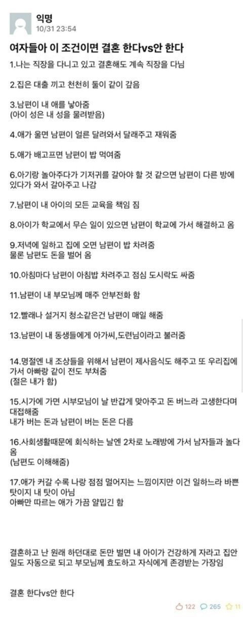 이러니까 결혼 안한다는 사람 많아지는 거임. 어차피 평생 사이 좋을 수 없으니까.