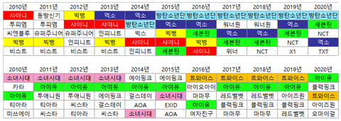 2010 - 2020 연도별 유튜브 국내 검색량 TOP5