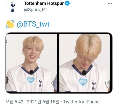 토트넘 공계에 지민이 올라왔어 ㅋㅋ