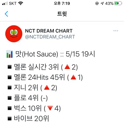 24힛 기특한 것 묵묵히 올라가고 있다 지니도 많이 상승했다 역시 떨어지면 끝까지 집착해서 올리는 우리 제법 멋있다 ... 근데 벌레새.끼 무슨일이냐