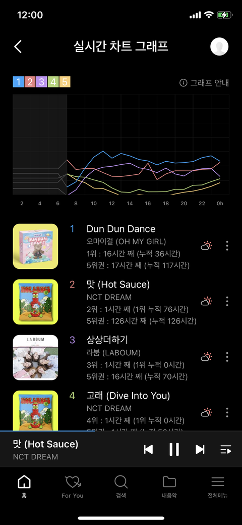 와 지니 수록곡 5위안에 진입 ㅠㅠ