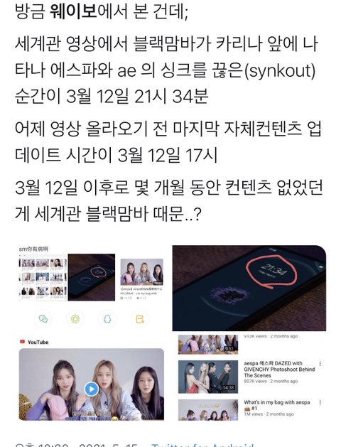 진짜면 스엠 진짜 세계관에 ㄹㅇㄹㅇ 진심인거임 난 우리 애들 자컨 안올라와서 슴 진짜 장난하나 싶었는데..아니 근데 어이없네 에스파랑 아이멤들이랑 싱크 끊어졌다고 왜 자컨을 안올려줘? 이것들아