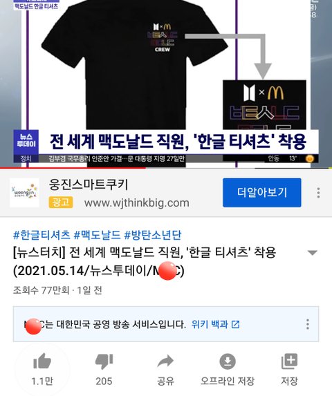 어제 올라온 ㅁㄷ날드 티셔츠 뉴스인데 77만명이 넘게 봤어ㅋㅋㅋ
