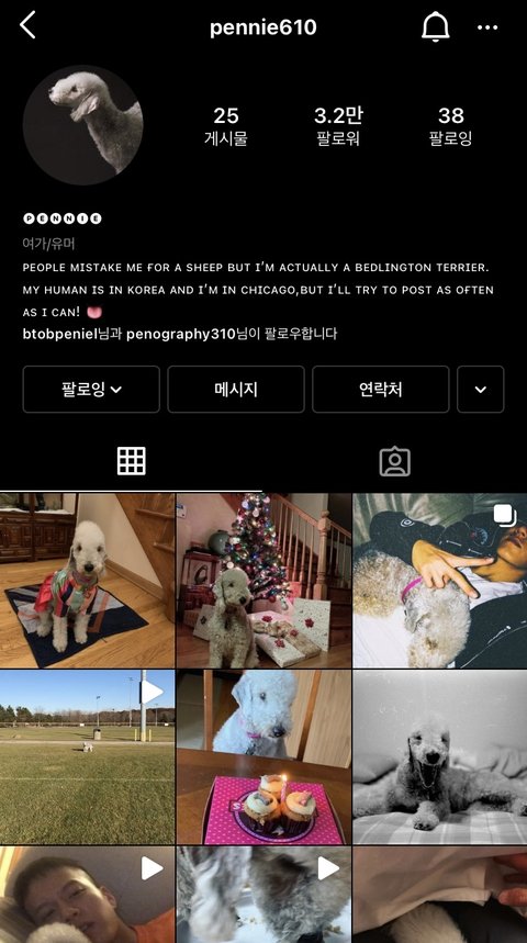 사람들은 저를 양으로 오해하지만 베들링턴테리어예요 내 인간이 한국에 있고 나는 시카고에 있지만 가능한 자주 사진 올리려고 해볼게요!