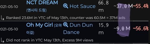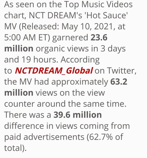 엔시티드림 맛 6300만뷰 중 프로모조회수 3900만뷰 프로모비율 62.7%