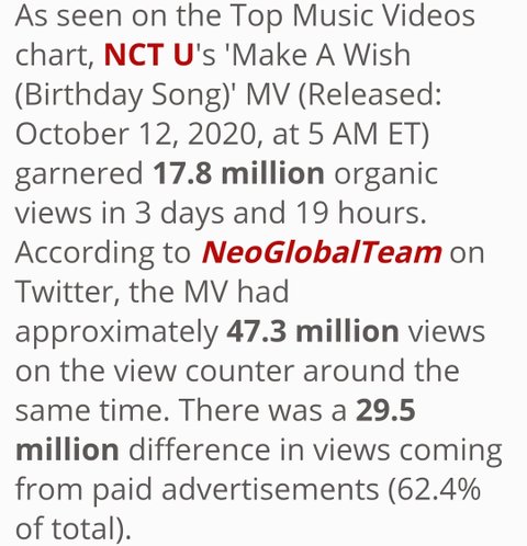 엔시티유 메이크어위시 4700만뷰 중 프로모조회수 2900만뷰 프로모비율 62.4%
