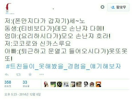 아빠도 어릴 때 팬픽 봤다고 받아침 사실 아직도 어이 없어...