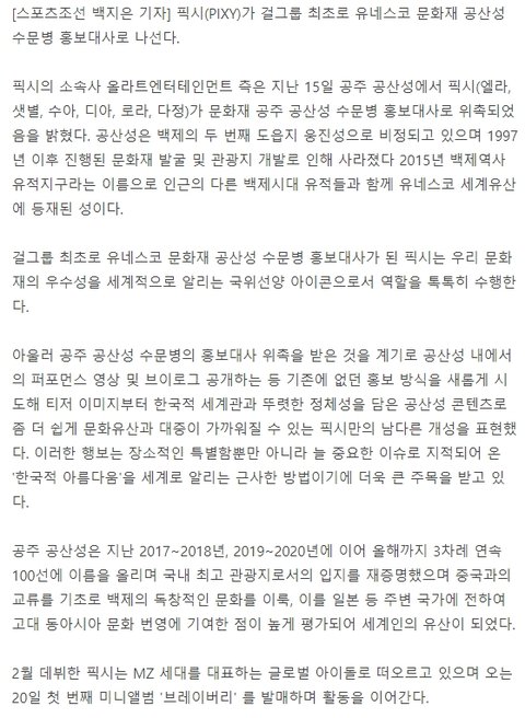 유네스코 문화재 홍보대사를 걸그룹이 맡은건 이번이 처음이래