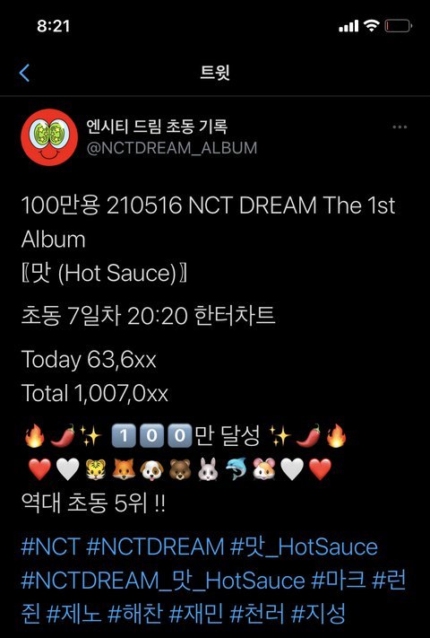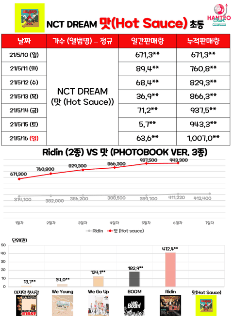 엔시티 드림 7드림으로 첫 정규로 돌아왔는데 초동 100만장 돌파했다! 역대 초동 5위에 올라왔어!!