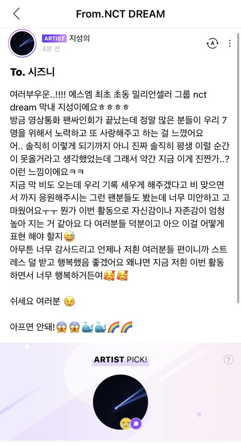 앞으로도 드림 많이 응원 부탁하고! 다들 알다싶이 정말 우여곡절도 많았고 졸업 부상 등등 많은 일이 있었지만 이 오랜 시간동안 함께 버텨준 시즈니와 7드림...쩔어주자 화팅!!