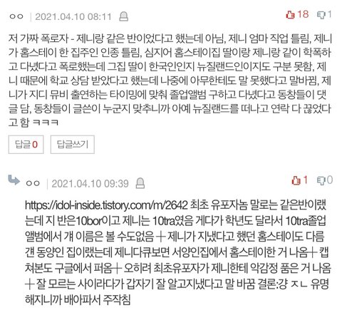 또 또 어그로 먹금 못하는척 제니 학폭 맞지 않냐고 까플 타려는 ㅅㄲ들 보이네 ㅋㅋㅋ 그럼 이거나 반박해보라고 좀 ^^