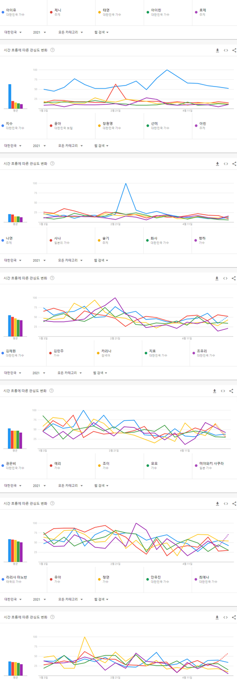 2021년 현재까지 여자아이돌 개인검색량 TOP30