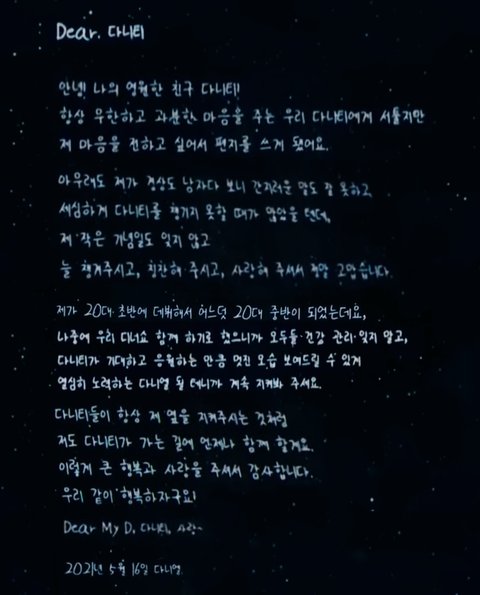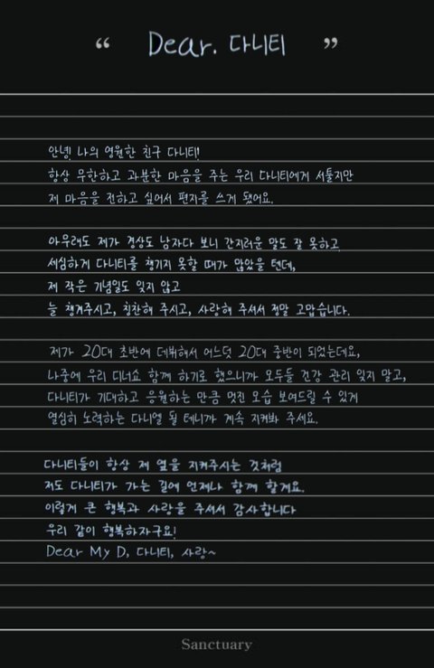팬파티 다니엘 손편지 "Dear 다니티"