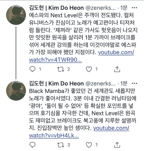 좀 난해한 느낌이 있긴 함 개인적으로 블랙맘바가 훨씬 좋았고 블랙맘바가 워낙 머글들한테도 은근 반응 좋았던 곡이다 보니까 상대적으로 그때에 비해서는 좀 별로다 싶은 반응도 나올수 있다고 생각해 호불호 좀 갈리는 편인거같은데 일단 노래에서 스엠 느낌 제대로 나는것 같기도 하고 난 좋았음 ㅇㅇ