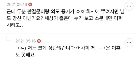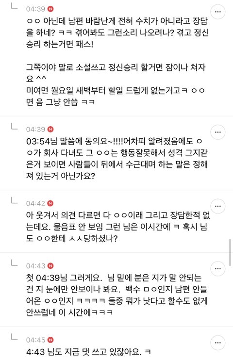 애초에 불륜하는것들은 사람새끼들이 아니라서 저럼요. 불륜하는것들은 부모자식도 몰라보는데 제정신일리가...ㅋ 정신승리는 지들이 하네요. 대단하다진짜..