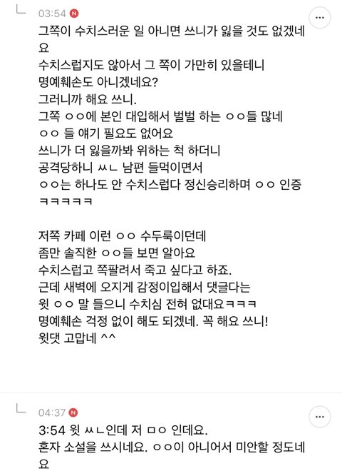 대체 무슨 카페길래 이렇게 정신나간 사람들이 __ 같은 개소리를 하는 거예요?