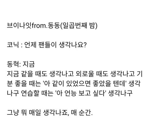 (여기 안썼다고 오해하면 안돼! 진환이는 팬들한테 항상 미안하다고 하는애고 윤형이는 항상 열심히 표현해주는 애고 준회는 표현은 잘 못하지만 이쁜글로 화답해주려는 애고 찬우는 묵묵히 뒤에서 나서는 진국인 애인거 다들알지? 내가 울보바보콘이여서 못쓴거야)