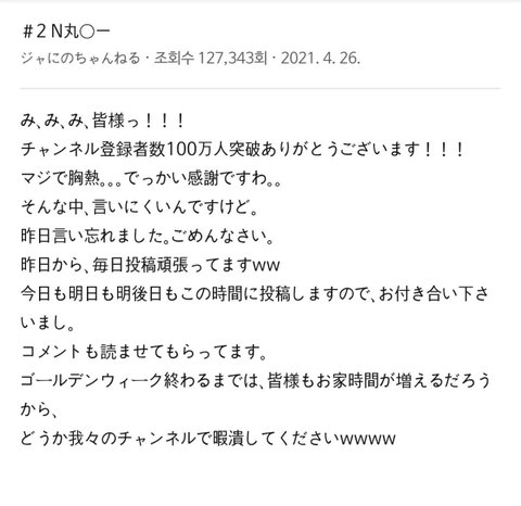 채널 등록자수 100만명 돌파 감사합니다!!!