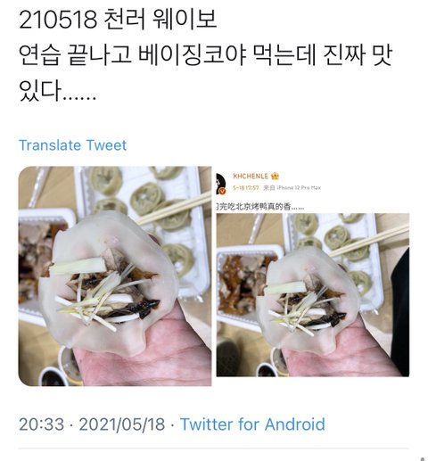 철러 웨이보 아까 방금 (?) 연습 끝나구