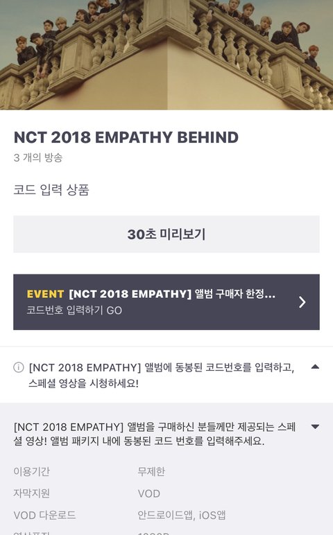 늦덕이라서 잘 몰라.. 미안.... 븨앱 이거 보려면 코드 입력해야되잖어 앨범 사면 거기에 써있다는데 그러면 그냥 엠파시 앨범 사기만 하면 볼 수 있는거야???