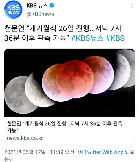 개기월식 5월 26일에 한다는데