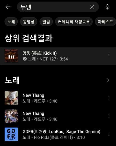 유튜브뮤직에 뉴땡이라고 쳐도 킹웅 나오네