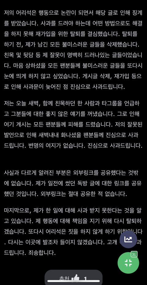 방금 본인 나와서 이러는데 왜케 오바야 ㅅㅂㅋㅋㅋㅋㅋㅋㅋㅋㅋㅇㅌ애들 지들이 일 더 키움 댓글 우수수 달리는거 봐 초록글 가겠네
