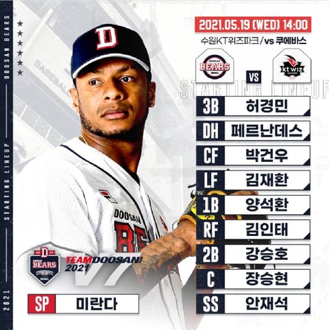 5.19 두산 베어스 라인업