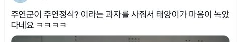 촬영중에 주연이가 사준 주연정식을 먹고 마음이 녹았어요 라고하심.....