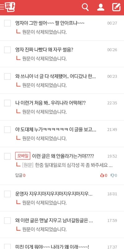 얘들아 판에 국적법이나 중국 비판하는 내용이 들어있는 글들이 바로바로 썰려.. 실시간으로 봤는데 실시간으로 감시하는 것 같아 얘들아 이럴때 더 우리가 관심 가져야해 계속해서 글 올리자