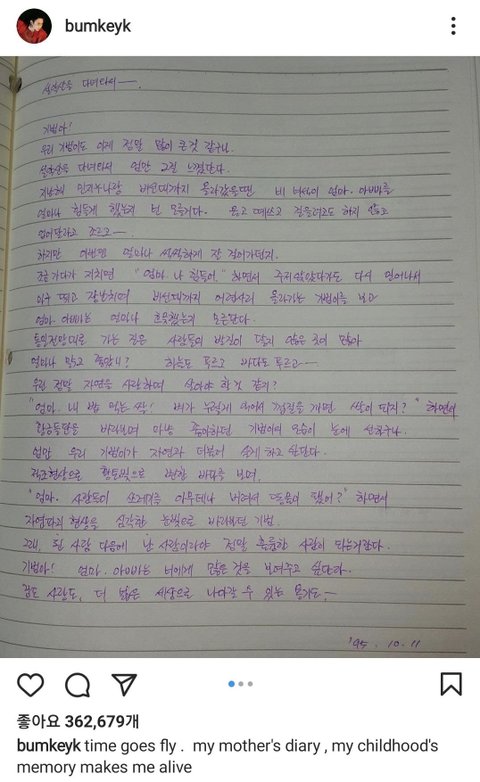 일기에서 기범이에 대한 사랑이 뚝뚝 묻어나