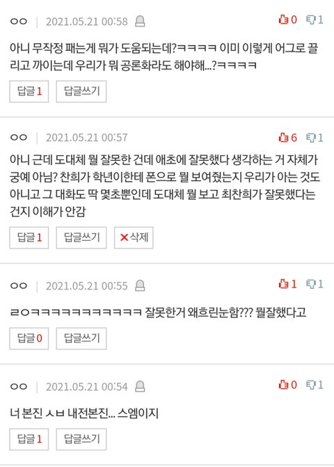지 혼자 어른인척, 비판적인 척, 척이란 척은 다 해놨더니 결국 애들도 웃기다고 븨앱 킴 넌 나가 그냥 븅딱아 그리고 저 글에 추천 누른 애들도 같이 나가렴
