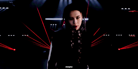흑백 댄서들 사이 걸으면서 조종하는 부분