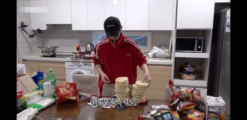 아침은 간단하게 라면 15봉과 김치케이크