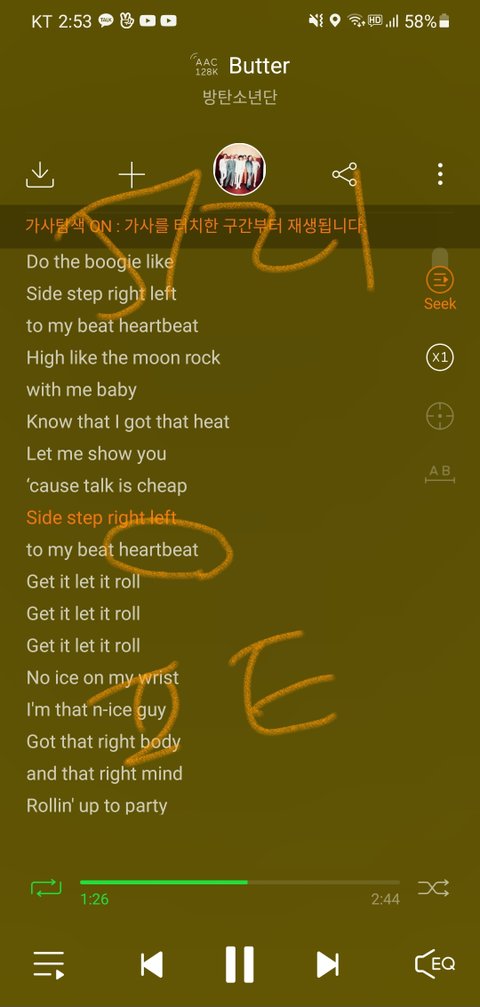저부분 heartbeat 나만 안들리는건가??가사에만쓰고 안부르는건강??
