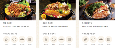 명품 감자탕,묵은지감자탕, 곤드레감자탕 이렇게 있는데