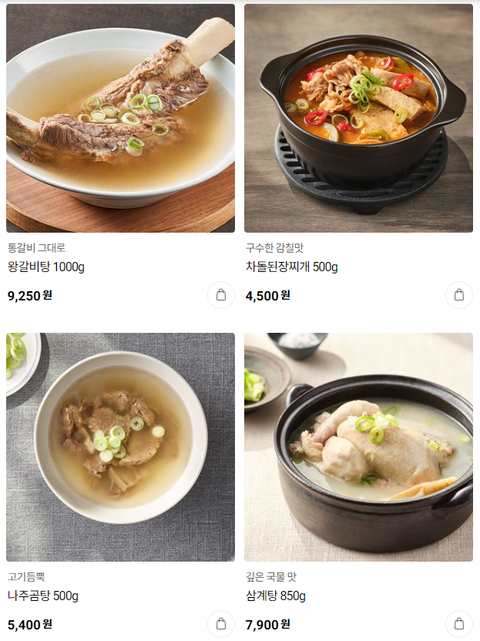 여긴 각종 반찬, 국, 찌개 다 모아놓고 파는 곳인데,