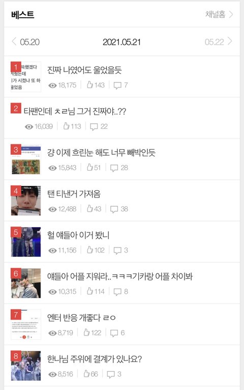 아까 밑에 조회수 얘기 있길래 봐봤는데 어제 오늘 차이 ㄹㅇ 미쳤네;; 남의 팬톡에서 관음하지 말고 엔터ㄱㄱ