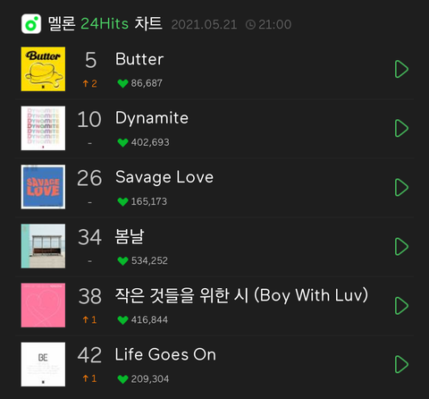 ㅊㅋㅊㅋ 해외아미들야 뭐 말모 조카 든든하지만 한국아미들도 진짜 든든함 대중픽 받을만한 조카 좋은 곡인것도 맞지만 그 어려운 24hit을 세 곡 연속 뚫어버리네