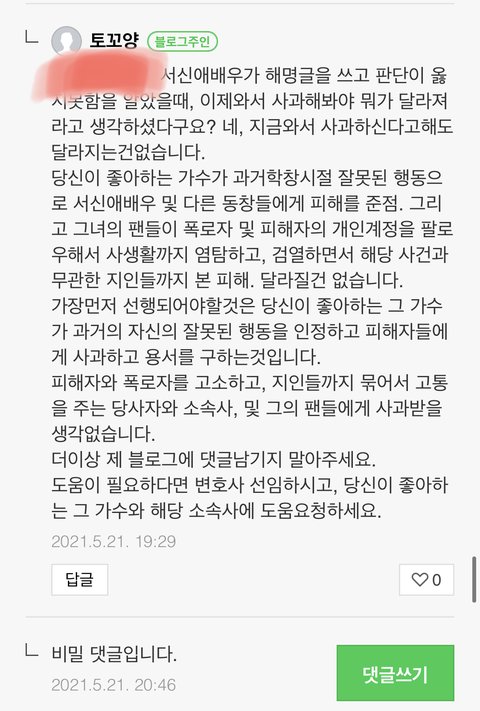 참 악플달고 다니는 사람들은 시간이 남아도나봄 부럽다. 비밀댓글은 먼가여 궁그미