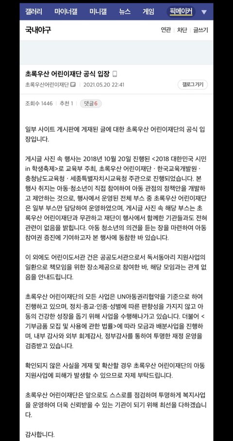 근데 그 해명문을 야갤에 20일 날 먼저 올리고 21일날 공식 입장을 올림