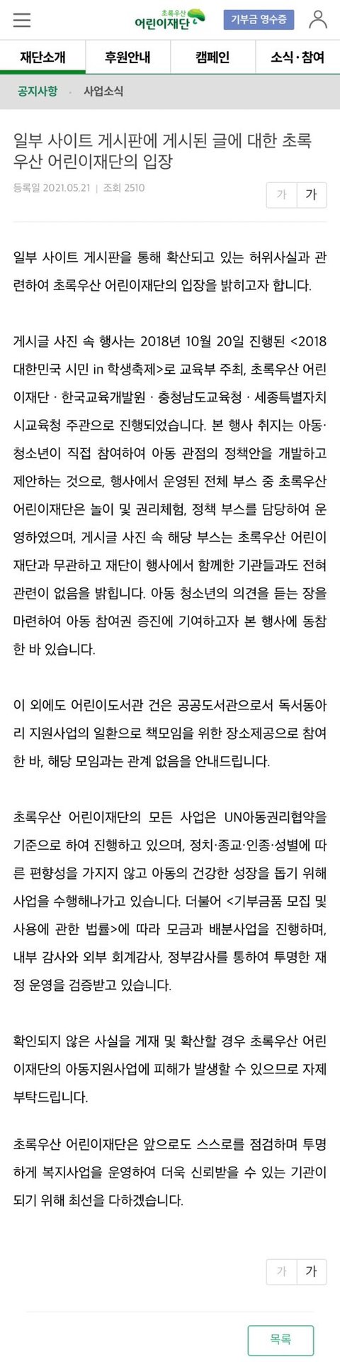 이런 재단에서 과연 어린이들을 제대로 후원해주는지는 의문