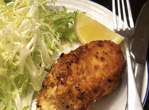 닭다리살에 치즈 페스토 넣고 둘둘 말아서 치킨커틀렛