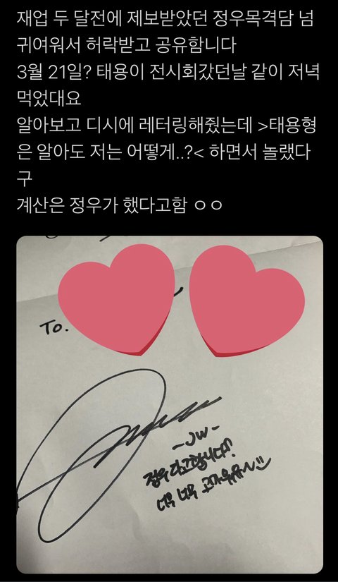 툥형은 알아도 저는 어떻게?ㅋㅋㅋㅋ정우라고합니다 적은거 너무 귀엽넼ㅋㅋㅋㅋㅋ