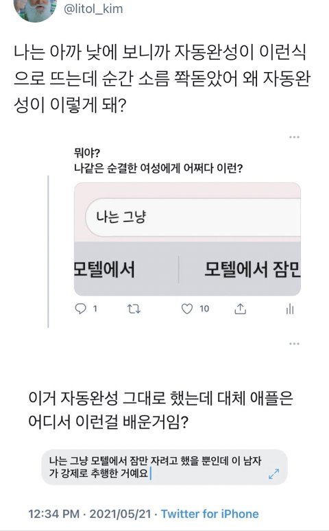 이거 진짜 문제 있는 거 아니야? 자동완성 되는 원리가 어떻게 되는데 이딴 문장들이 나와 싹 다 무작위로 나오는 건 아닐 거 아니야
