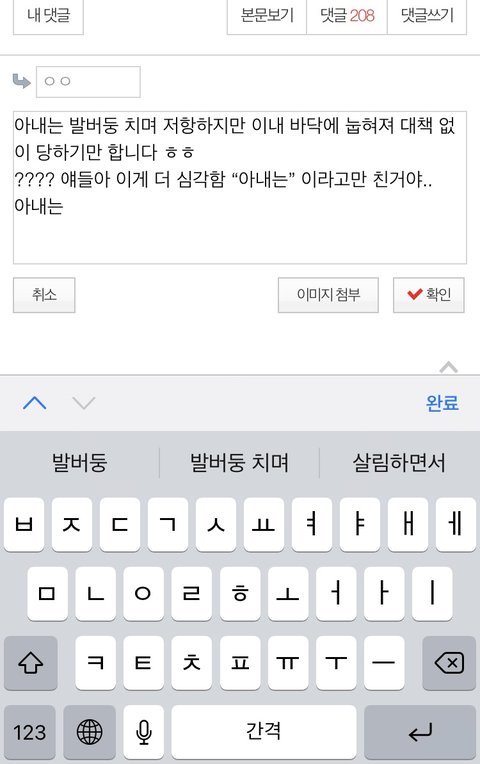 아내는 발버둥 치며 저항하지만 이내 바닥에 눕혀져 대책 없이 당하기만 합니다 ???? ㅅ.ㅂ 얘들아 이게 더 심각함 “아내는” 이라고만 친거야..