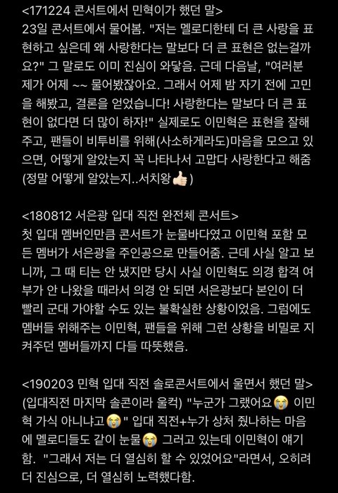 이거 보고 정말 놀랐어... 이렇게 팬한테 지극 정성인줄 몰랐는데 지금 이민혁님한테 제대로 감긴거같아 멜로디들아 ㅜㅜ