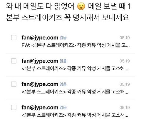 메일보낼때 1본부 스트레이키즈 쓰면 더 잘 읽히나봐