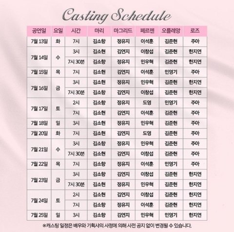 설마 캐스팅 바뀌지는 않겠지..?? 일단 나는 7.20. 화요일