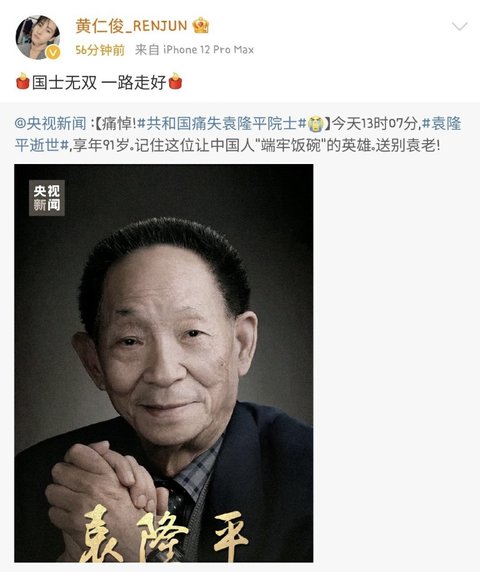 오늘 러러랑 인주니 웨이보에 추모글 올라온